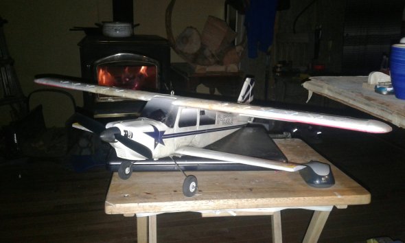 Note the date, this is from over a year ago, and the ship has changed a tad since then. She was a flat topped .9meter Cessna styled highwing trainer, now, she is a bipe with some extras to increase lift (and allow slower flights without stalling.)