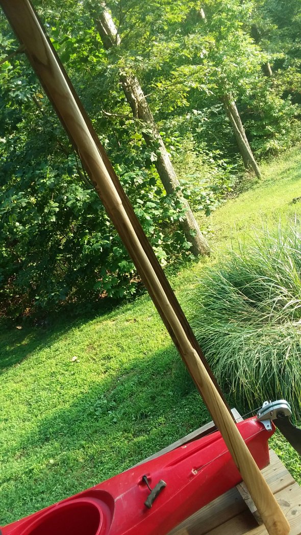 Something a tad different this week. Did an experiment in paddles. There are several different styles of paddles for yaks, euro, wing, etc, but the ‘original’ paddle is dubbed Greenland paddle. Lots of info on the nets about ’em, several different offerings for plans, and the usual chevy/ford, AR/AK, 1911/Glock arguments, etc, etc. I became a little intrigued. Going cost on one in purchase is around the $300 dollar range, some more some less, but right around there.