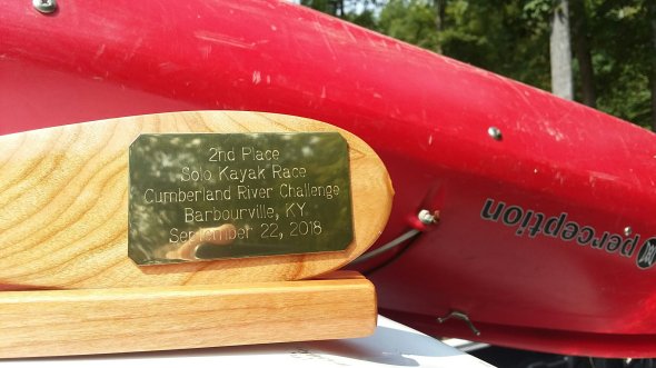 5.2 mile sprint, one set of class II, river at usual stages. Rained the whole race and that was actually fun for me. Of the thirty or so racers 20ish were in those superlong toothpick high performance yaks. The rest of us were in pretty much everything else: some long (me @14.5′) some short (an 8′ playboat).
