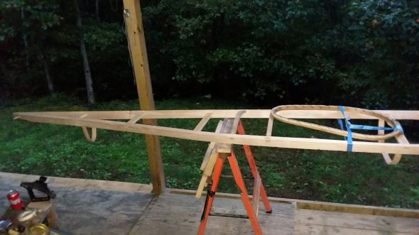 More later. I’ll have the deckbeams done in the next couple days, but I still have to go out and chase that fithy lucre called “income”. LOL. I’ll be cutting the rib stock later this week to, and I’ll play some with the below deck shape in the meantime. I have some whiteoak cut super thin that works for experimenting, as you can see near the bow and midships at the cockpit. Bends like taffy but not strong enough for actual duty. Both of those pieces were cut to the gage standard as describe in Chris’ book, and they might work for a full blown greenland boat, but I want a different shape, so they will change. Its late, i have to work in the AM, and I havent exactly ‘rested’ tthis weekend. Though; work like this stuff tends to energize me more than “work”. In fact, I’ll have to be careful at work to keep my mind on “work”, and not daydreaming about whats sitting on my porch, waiting to be finished.