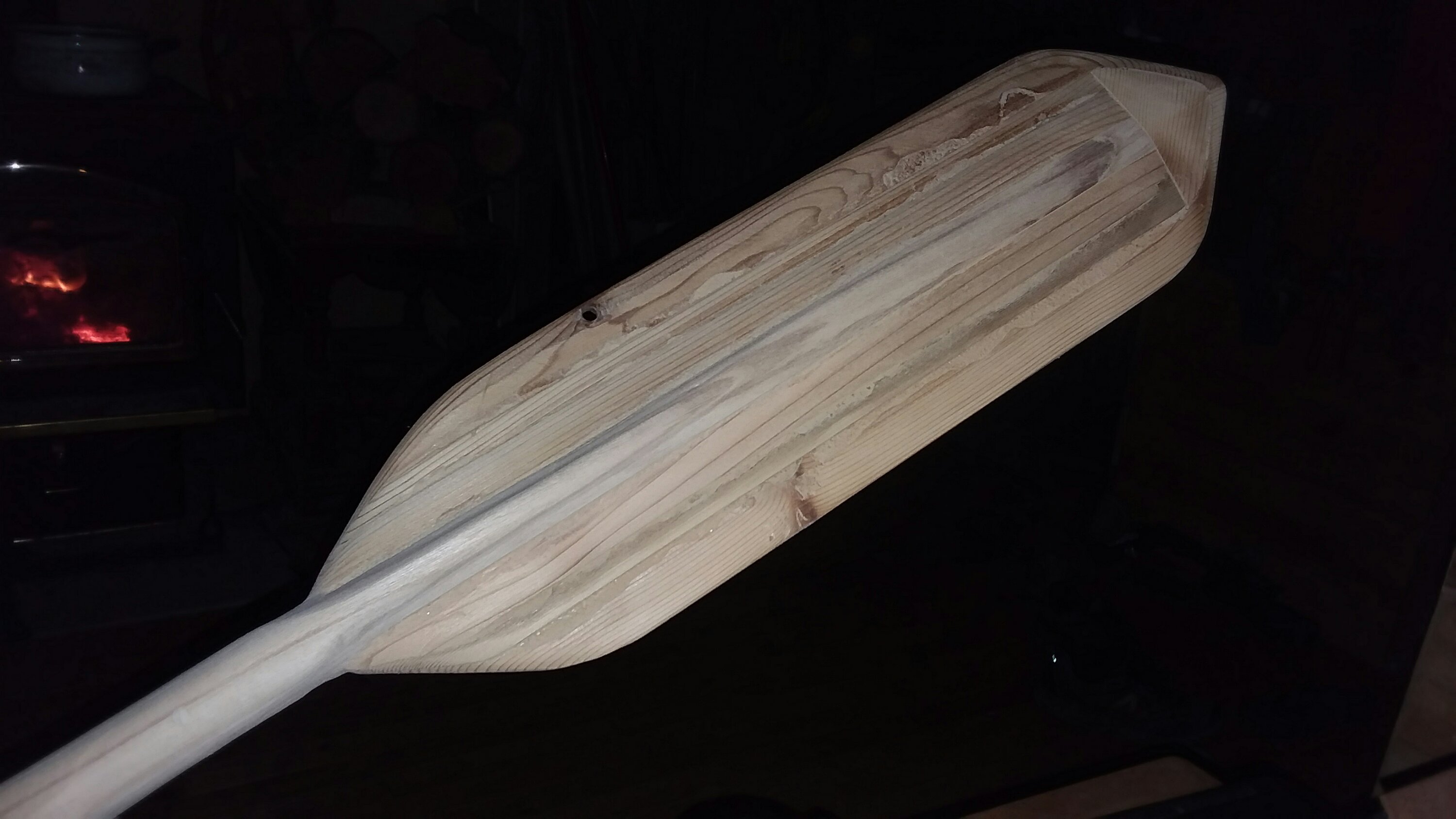 Now, about the paddle, I am not sure it will improve on things or not. Making it, I can see it doing some things better, but not all things. A Greenland Paddle is a series of compromises, but is VERY flexible in usage. Detailing any one usage detracts from others. I can see this blade performing power strokes and sculling very well, but ruddering and some other sweeps will be reduced.