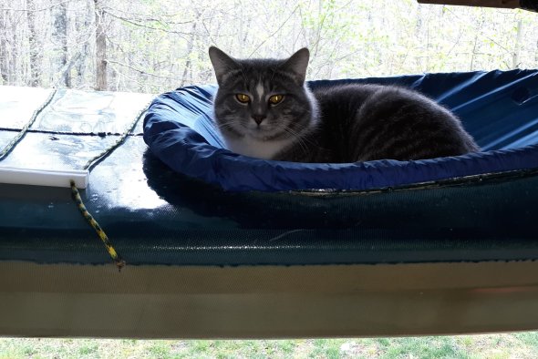So here I am, sitting on the porch, listening to the tap-tap-tappa-tap of raindrops, an occasional rumble of angry air elementals, and dog snores; watching a pair of disgruntled kitties who often look at me with condemnation in their eyes
