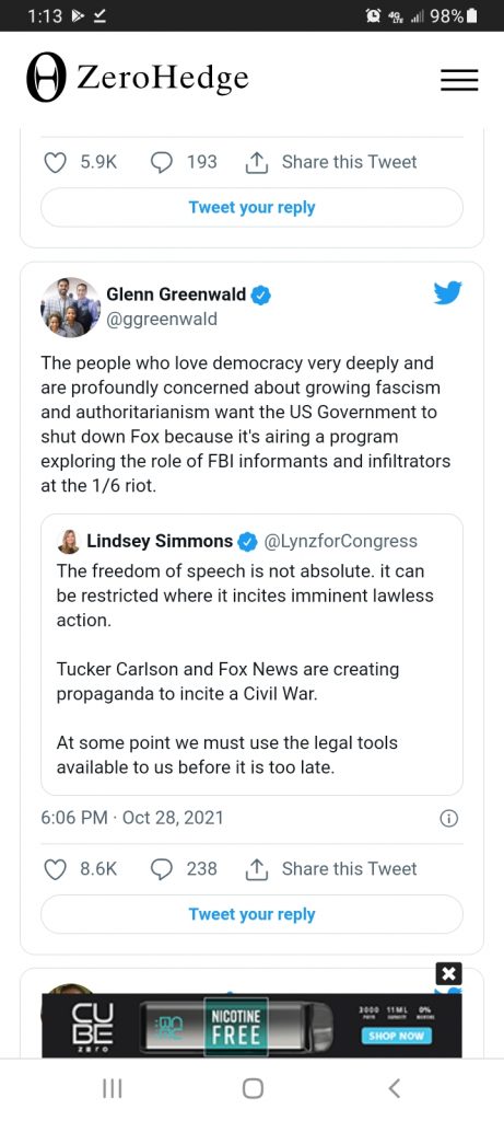 First off, the commenter glenn, apparently has zero clue what Fascism or Authoritarianism is since we are VERY MUCH IN BOTH IRL. Second, the respondent stating “Freedom of Speech is not absolute” is so fucked in her mindset that she wouldn’t know how to handle TRUE FREEDOM. Freedom of speech MUST be absolute or there is no such thing as freedom of speech. THE ABUSERS OF SUCH that are inciting violence or panics or riots MUST be held accountable AFTER THE FACT, but there should be zero restrictions on the speech itself. IF you go around yelling FIRE in a theater, just as an example, you are inciting panic, NOT PRACTICING FREE SPEECH, and should be held accountable. BUT to say that no one should yell FIRE!!!! in a theater is creating a safety hazard and IS a restriction on free speech and negates the whole point of the First Amendment.