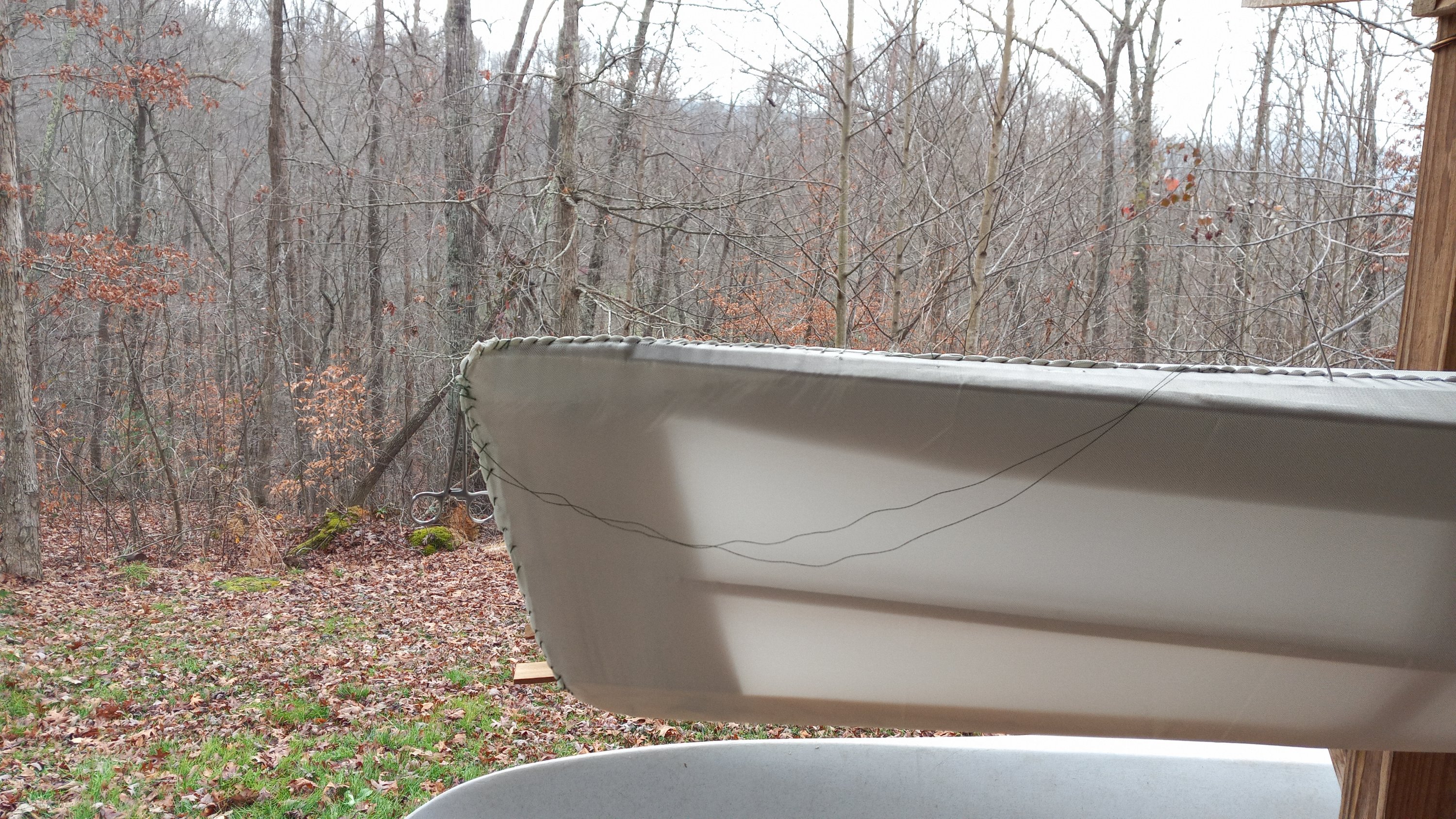 As for my build, I have no idea why I havent used this fabric before. Stretches easy, shrinks easy, forms around the frame smoother without needing a ratchetstrap and come-a-long for the needle pulls: basically gets drum tight with a third th effort of Ballistic Nylon, and isnt hydroscopic like BN is, so won’t get all floppybaggynasty.