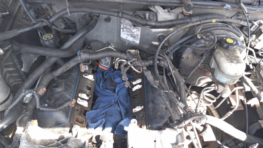 Intake manifold gaskets started puking coolant INTO the manifold. Smoke screen effect? We has it!!!