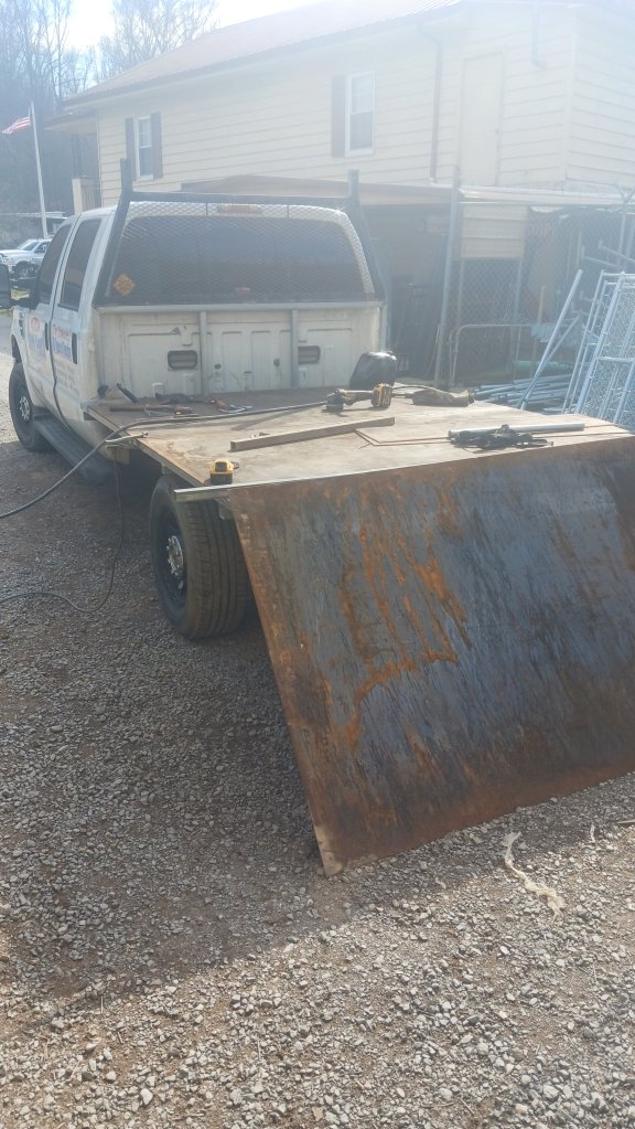 Been working on make one of the work trucks a flat bed, and this mornin’ Bossman told me that he found some plate and we were going to pick it up first thing.