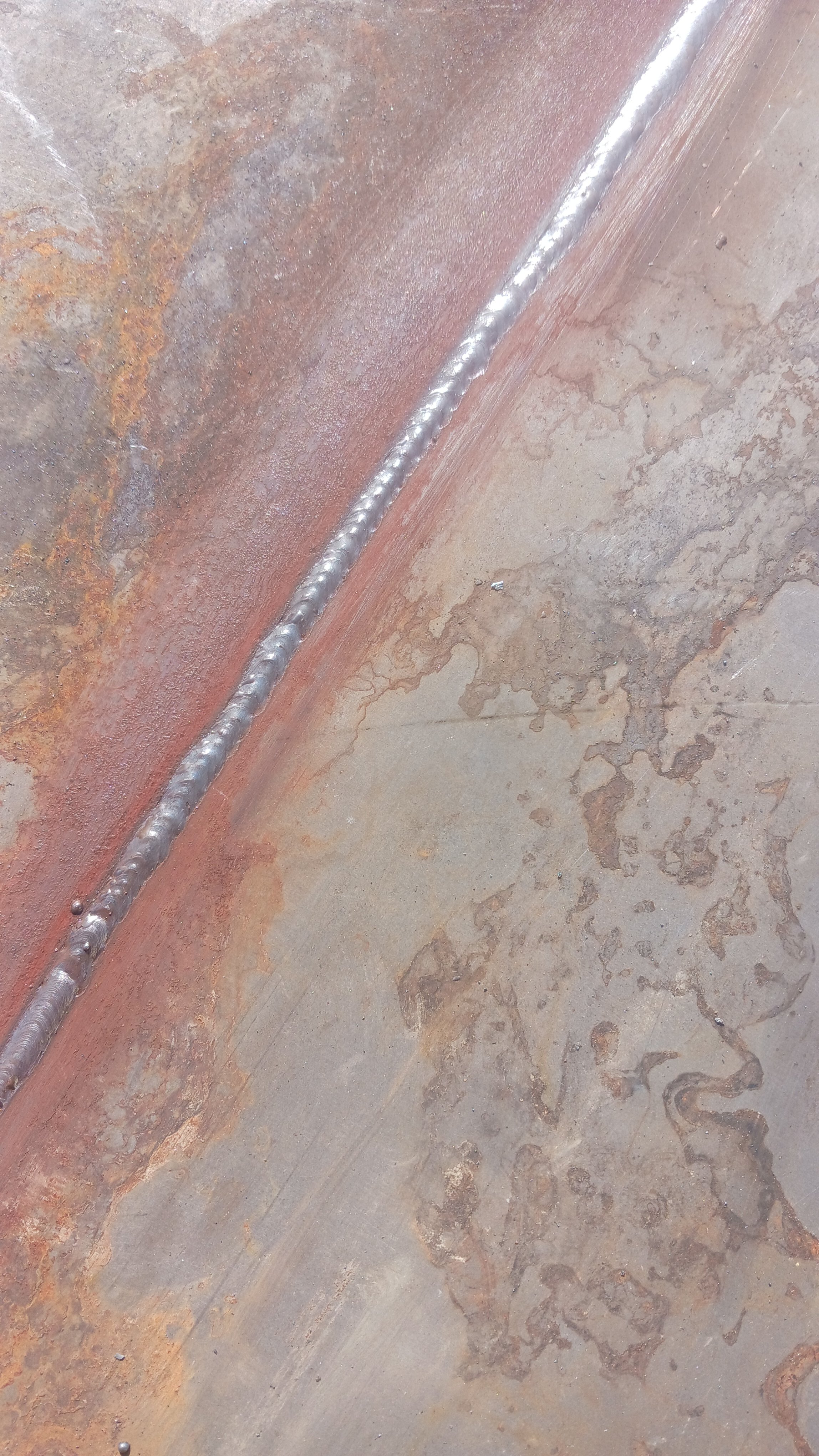 Got a couple of spots that look pretty rough where the wind picked up and the steel actually burned ’cause the sheilding gas was blown off. Figure its daggum flatbed, its gonna see hard use and rust and all manner of abuse, so,,,, ‘good enough’,,, LOL