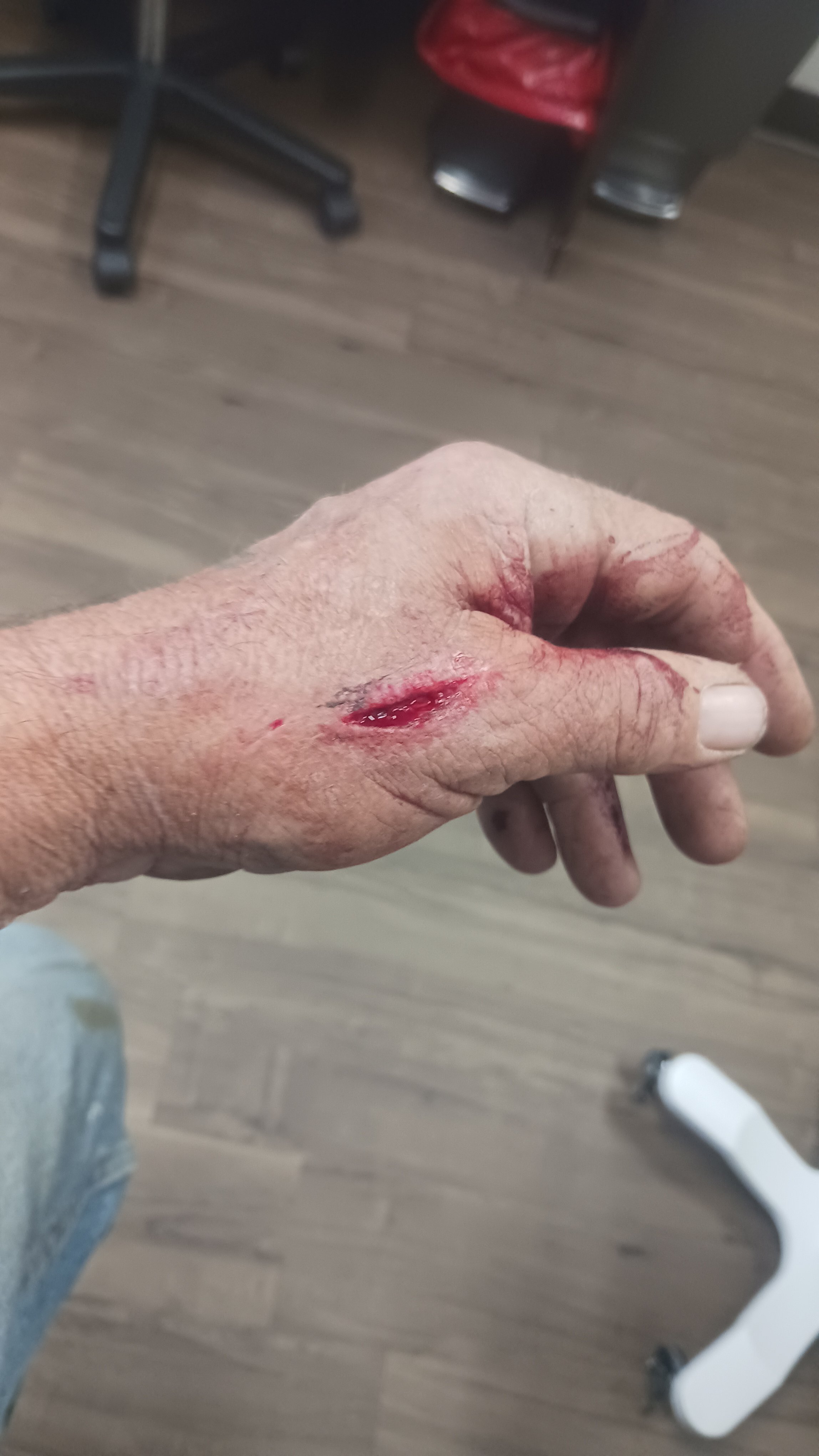 Gloves don’t bleed,,, but that one seemed to until I got it off. That went through a cowhide glove like butter, coulda been a hella lot worse.