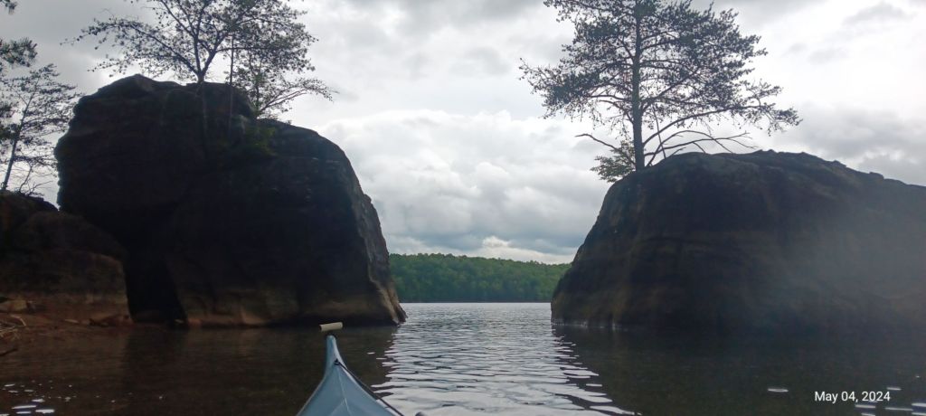 I found that cool as shit and my pictures do it no justice. The big rock on the right is surrounded by DEEP water, and the channel between,,,, I pushed my paddle in as far as it would go, and didn’t hit bottom. Waves coming in formed a zig-zag pattern, almost herring bone like and fun to paddle through.