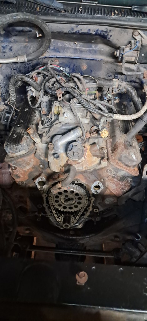 SO,,,, at this moment, Bloo is ‘almost there’. I have the intake plenum and manifold to remove to get to the oil galley below that, where the lifters are. I already have full access to the cam, just need to clear passage out/in for the swap (the new won’t go in until I verify those lobe orientations) And I still need to pull the oil pan and do the oil pump thing.