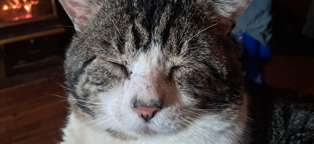 (fyi: thats Zoomie, my alphatomkat. Head like a prime Florida Grapefruit, 18# and no fat anywhere, and about as laid back as a kat can get without being a corpse.)