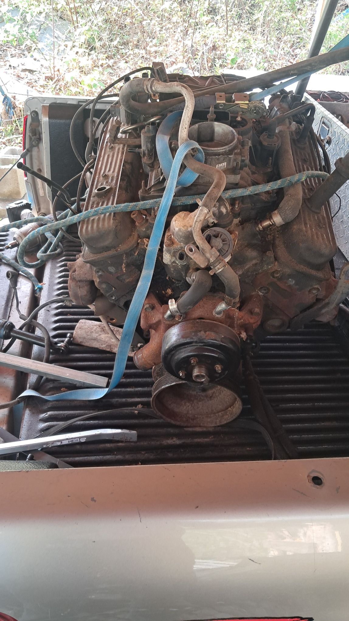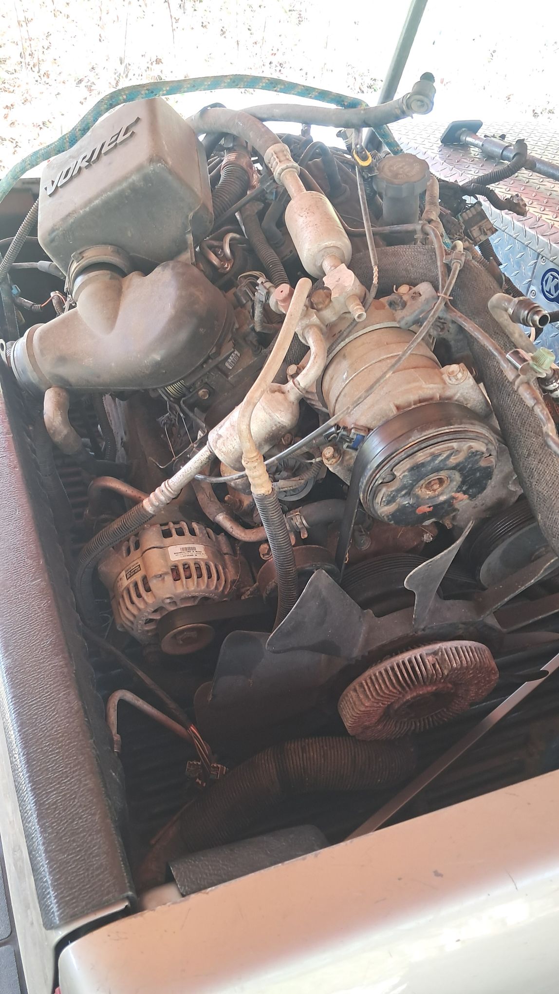 the only thing I found wrong on teh accessories was the AC compressor is locked up. The Clutch pulley spun fine, but the compressor itself locked tight. No biggie, Bloo’s works just fine and I didn’t want to open the AC system anyway.