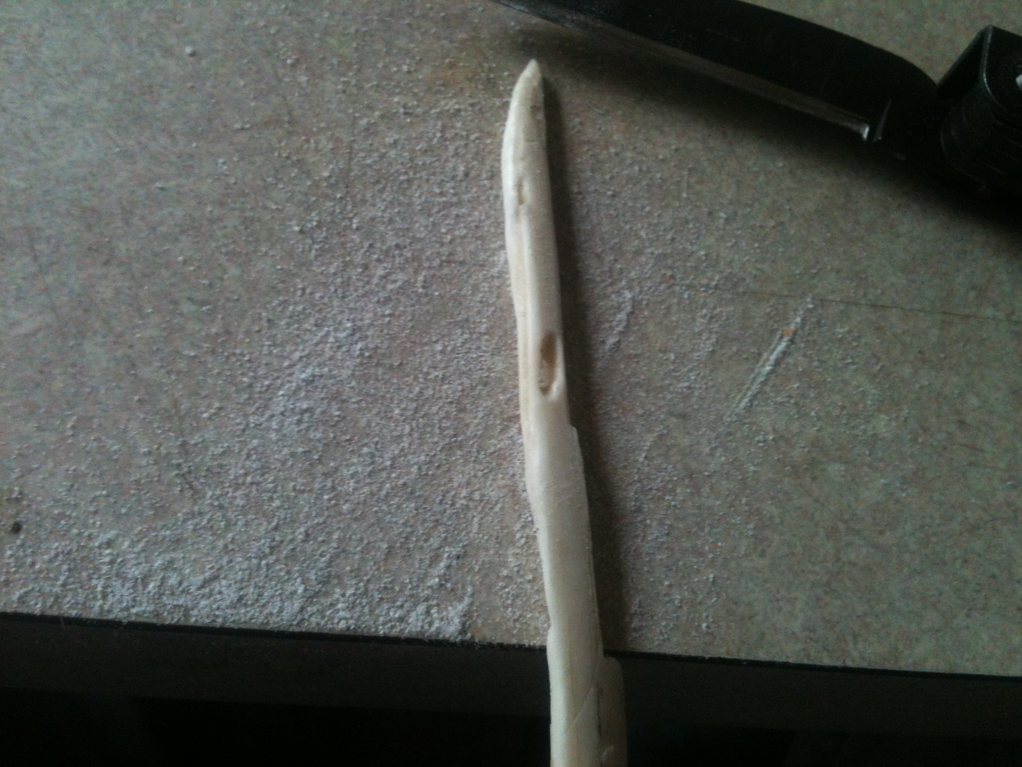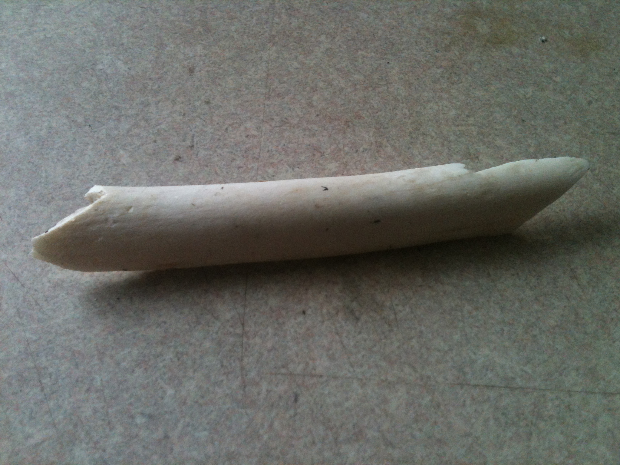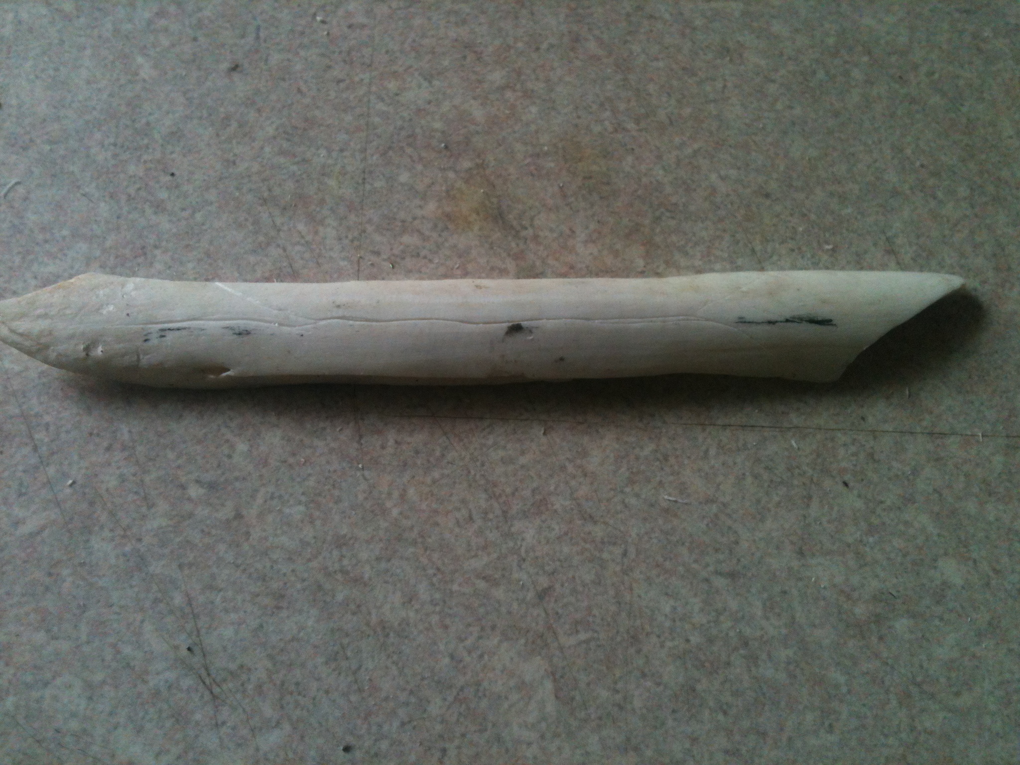 Today is bone day. What can a bone be used for. Well, a good sized femur is an excellent club for one, but that is far more primitive than I want to address today. Look at what tools can be made from a bone. I made two tools from a section of bone that Voodoo had grown bored with.