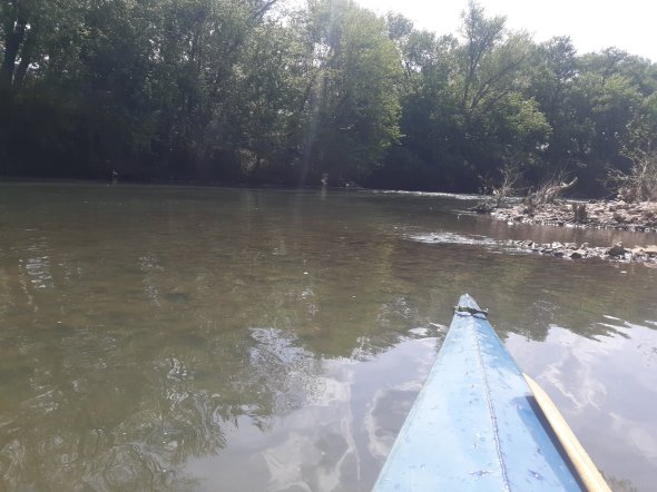 That smaller paddle on the deck is called a storm paddle and it was what helped me get back. With how swift the water was, it was time to call it quits without a full paddle. (The storm paddles work well enough, but its not a stroke I’m strong in. Not strong enough to get upstream in fast water anyways.)