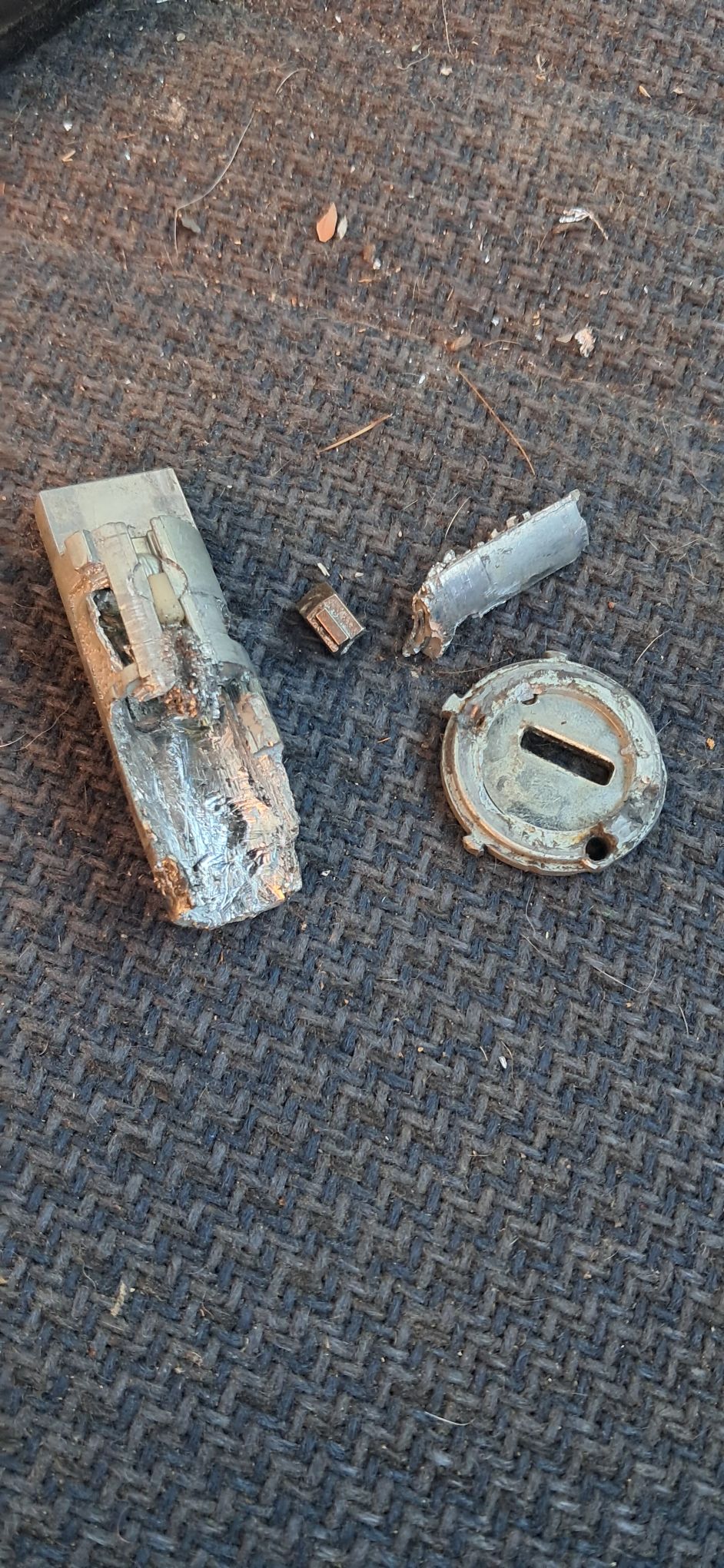 That is what is left of the old Ignition lock cylinder,,,, Least to say, a couple hours of brute force application was required. Including pulling the steering wheel (which in hindsight, SHOULD have been my first move,,,)