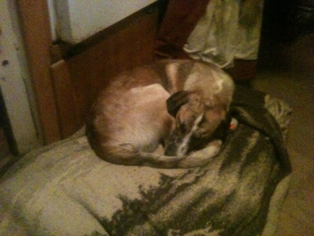 Today, around 10:20, Voodoo’s heart beat for the last time. Yes, I chose to have him laid down, versus seeing him dwindle further and further into decrepitude. Hip displasia, deaf as a doornail, cataracts forming, and losing control of the back legs, showing obvious pain. The last couple of days, I had to help him get back onto the porch since he couldn’t get his rear-drive up high enough to climb the single step.