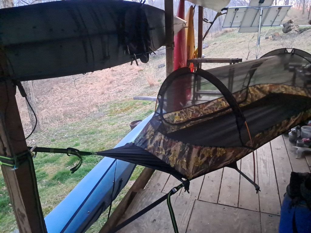 Not gonna lie: this is likely NOT a good unit for hikers. The whole thing packed up is double the size of my Lynx tent, and weighs in near 8#. As a kayakamping unit or car camping one: perfect. It fit easily into my back hatch and slid full forward without a fight. I really need to do a weekender with it to get a better review in, but so far, ME LIKEY!!! Givin’ it 4 1/2 stars (those toggles broke the star in half) and “would recommend” with ‘YMMV’ attached (not a Hiker Tent,,,) Also note; This is not a four season tent. There is a lot of gap between the fly and the ‘deck’ that allows copious amounts of ventilation. As could be seen in my first post, most of the hammock side of things is bug net, not wind breaking material. Perfect for moderate to tropical conditions, total fail in winter freeze the nads off conditions.