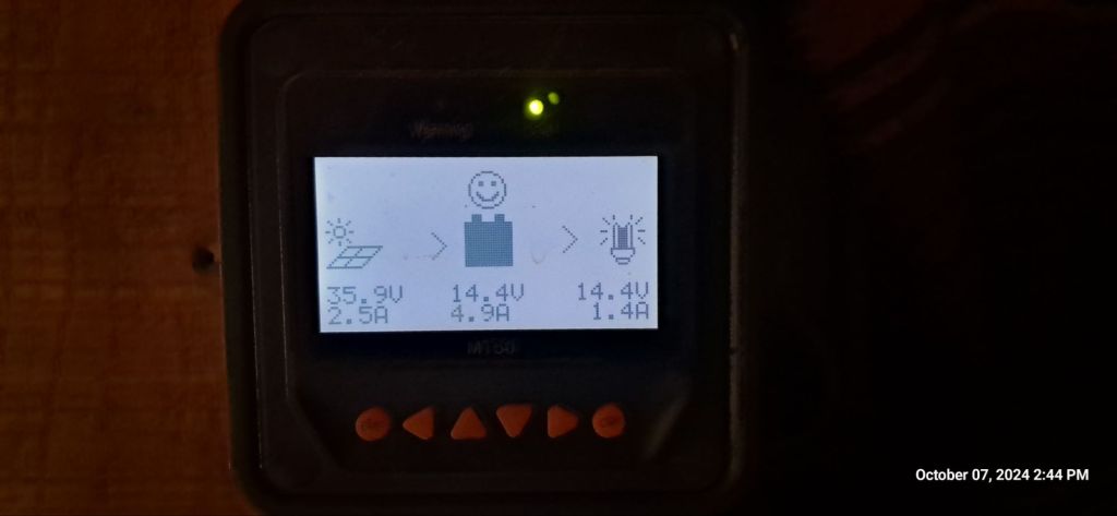 My new Charge controller came in today and I installed it as soon as I arrived home. Battery banks MUCH happier! Those are good numbers considering I ran the bank straight to the panels for a week straight. The batteries jumped back up pretty quick, and when I ran all the wires and hook ups, the controller went straight to balance mode.