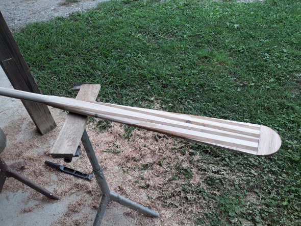 Same length as my older paddle, same loom but I decided to try a shoulderless design this round.